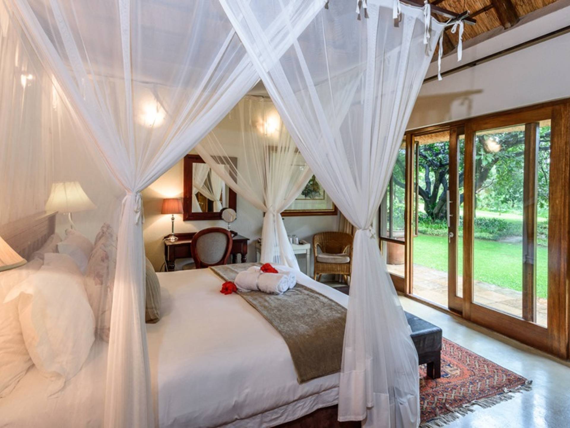 С возвышающегося горного хребта Дракенсберг открывается величественный панорамный вид, от которого у вас перехватит дыхание, когда вы ступите на обеденную террасу на открытом воздухе в особняке Khaya Ndlovu Manor House. Роскошные люксы Hardwood в колониальном стиле расположены в особняке. все имеют потрясающий вид на тропический сад и внешние веранды, на которые можно попасть из номеров. Обитающие в саду обезьяны доставляют много развлечений своим акробатическим представлениям среди ветвей высоких деревьев, разделяя свою великолепную игровую площадку с множеством болтающих видов птиц.